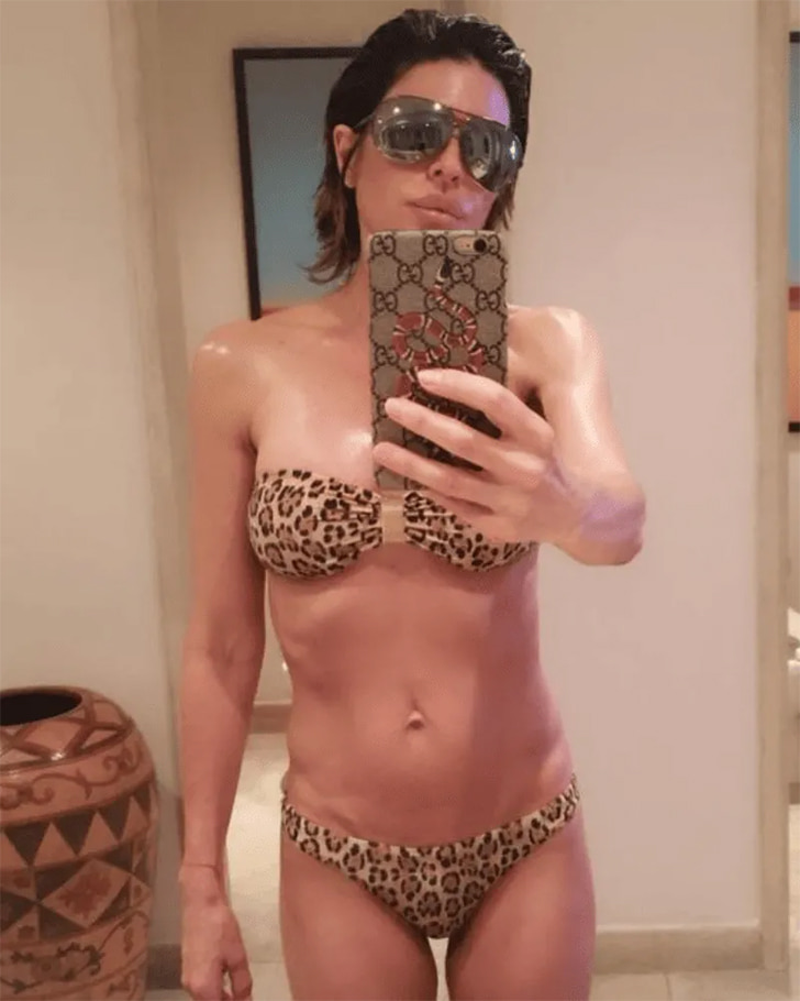 Eva Longoria, znana z roli w serialu "Gotowe na wszystko", prezentuje się olśniewająco na zdjęciu przy basenie. W czarnym bikini i stylowym kapeluszu robi selfie w lustrze, wyglądając tak świeżo i atrakcyjnie, że mogłaby wzbudzić zazdrość wielu kobiet w jej wieku. Aktorka utrzymuje formę dzięki połączeniu treningów cardio i siłowych, które pomagają jej zachować wysportowaną sylwetkę.