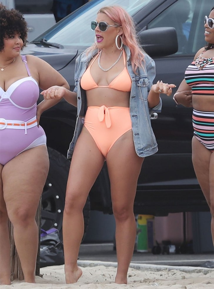 Busy Phillips prezentuje się jak super fajna mama w brzoskwiniowym bikini zestawionym z dżinsową kurtką, tworząc swobodny i charakterystyczny styl, który idealnie odzwierciedla jej osobowość. Widzowie kojarzą ją z seriali "Luzaki i kujony" czy "Cougar Town: Miasto kocic", jednak to jej otwartość i ciepło sprawiły, że zyskała tak wielką sympatię fanów. Jej sposób dbania o kondycję opiera się na równowadze między ruchem a radością życia – Busy uwielbia wędrówki, taniec i jogę, które wspierają zarówno formę fizyczną, jak i dobre samopoczucie.