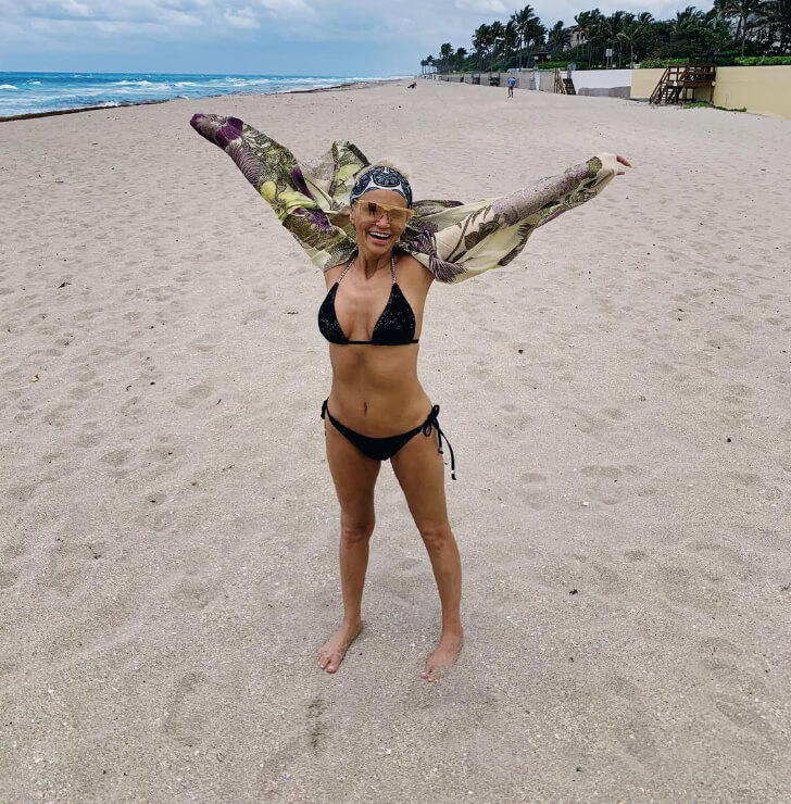 Luann de Lesseps, gwiazda programu "The Real Housewives", to prawdziwa dama, która z upływem lat wygląda coraz bardziej zjawiskowo. Na zdjęciu, opalając się w klasycznym czarnym bikini, prezentuje świetnie utrzymaną sylwetkę. Jako piosenkarka i osobowość telewizyjna podbiła serca fanów swoim efektownym stylem życia i wpadającymi w ucho utworami. Jej pasję do fitnessu widać w smukłej figurze – Luann regularnie trenuje, łącząc taniec, cardio i ćwiczenia siłowe.